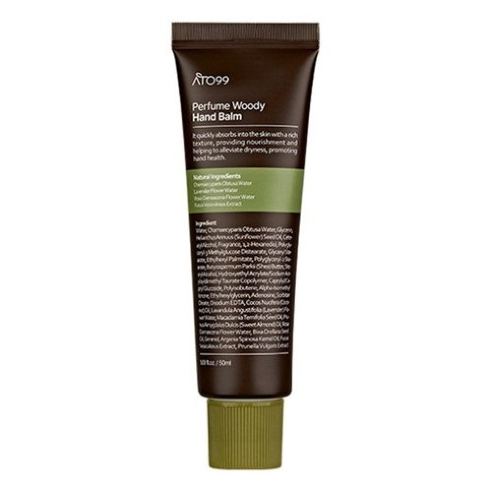 Ароматний крем для рук зволожує, живить і захищає тонку шкіру рук, яка схильна до пересихання та постійно піддається впливу зовнішніх подразників. Допомагає усунути лущення, відчуття стягнутості та запобігає появі тріщин. Регулярне використання ATO99 Perfume Woody Hand Balm допомагає зменшити ознаки передчасного старіння, а також підвищує рівень зволоженості та еластичності. В складі суміш натуральних олій та рослинних екстрактів, які заспокоюють, пом’якшують та зміцнюють шкірний бар’єр. Має ніжну, кремову текстуру, що комфортно та швидко вбирається, не залишаючи липкої чи жирної плівки. Легкий аромат із нотами лаванди, троянди та теплою деревною базою.