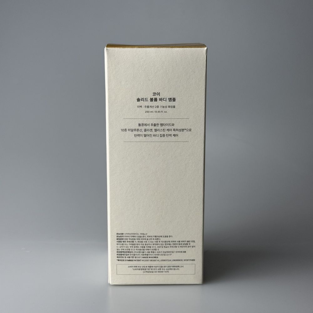 Ампула з потужним складом, спрямованим на підвищення щільності та об’єму шкіри, створює виражений ефект наповнення й молодший вигляд. Засіб підвищує еластичність, зменшує помітність дрібних зморшок і працює на відновлення пружності. Формула з протеїново-амінокислотним комплексом NMF та багаторівневим гіалуроновим комплексом забезпечує ""плампінг""-ефект, візуально заповнює дрібні заломи та вирівнює рельєф. Ампула інтенсивно зволожує, покращує здатність шкіри утримувати вологу та допомагає запобігти сухості. KOY Solid Body Volume Ampoule створює відчуття щільного наповнення в зонах зі зниженою еластичністю - на шиї, у зоні декольте, на животі, стегнах та інших ділянках тіла. Легка шовковиста текстура швидко вбирається та підходить як самостійний догляд або як концентрат під крем для тіла. За регулярного використання шкіра стає більш пружною, гладкою та візуально молодшою. Має м’який природний аромат з нотами лаванди та кедра, що створює відчуття спокою та гармонії.