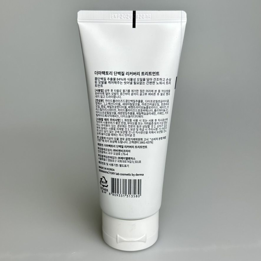 DERMA FACTORY Protein Recovery Treatment робить пошкоджене сухе волосся блискучим, м'яким, здоровим і гладким.