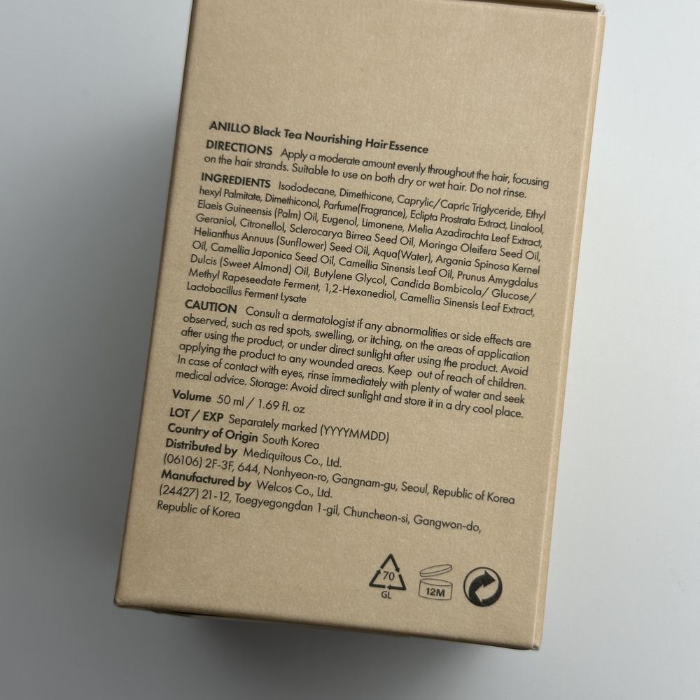 Волосся та шкіра голови потребують дбайливого догляду на регулярній основі. Завдяки цьому зачіска завжди буде розкішною та привабливою. Для глибокого живлення волосяних фолікулів та їх збагачення поживними речовинами рекомендується використовувати спеціальну есенцію з екстрактом чорного чаю. ANILLO Black Tea Nourishing Hair Essence можна використовувати для волосся будь-якого типу. Результати помітні вже після першого нанесення. Комплексний склад живильної есенції надає волоссю розкішного вигляду та натурального блиску. Косметичний засіб вміщує велику кількість поживних інгредієнтів, які позбавляють від сухості волосся та усувають тьмяність. До переваг препарату належать: