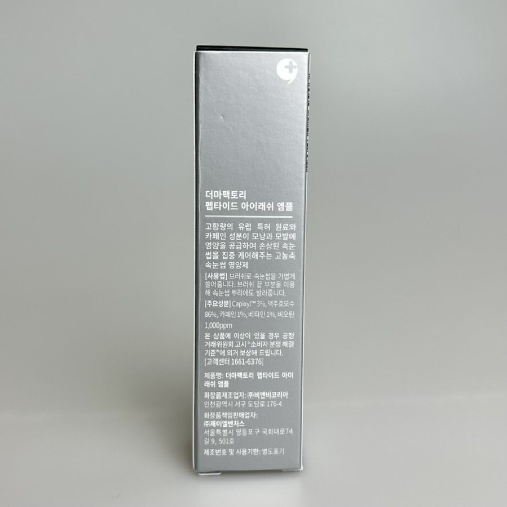 Поживна сироватка для сильних і міцних вій. Сироватка відновлює та розв'язувати проблему ламкості та слабкості вій через частого фарбування. Живить і зміцнює вії від коренів до кінчиків, захищає від сухості та ламкості. Сироватка має концентрований склад з 86% пивних дріжджів, 3% високоефективного пептидного комплексу та 1% кофеїну, які відновлюють та стимулюють зростання вій та брів. Засіб збільшує об'єм та густоту вій, надає блиску та шовковистості. DERMA FACTORY Peptide Eyelash Ampoule можна використовувати як на брови, так і на вії. Не містить компоненти, здатні викликати подразнення (олії, штучні барвники та віддушки, силікони, спирт, ПЕГ, інгредієнти тваринного походження), pH подібний до середовища природної сльози для запобігання печіння. Всі інгредієнти належать до зеленого рівня EWG, продукт є безпечним та не викликає подразнення очей. Швидко поглинається без липкості, можна використовувати перед макіяжем.