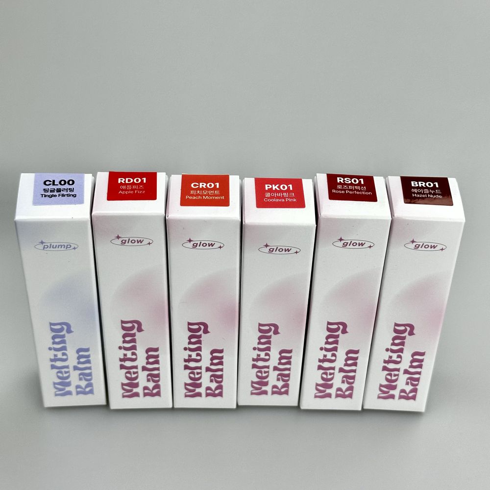 - CL00 TINGLE FLIRTING - надання обʼєму. М'яке покриття з ніжно-фіолетовим перламутровим блиском (не містить тінту). Призначено для нанесення як верхній шар для надання глянцевого блиску, як блиск для губ. Розроблено для найкращого змішування з іншими продуктами лінійки.