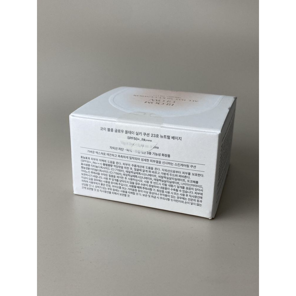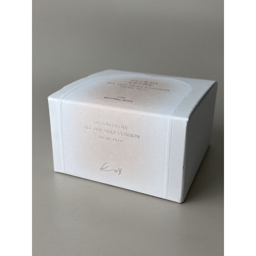 Тональний кушон із SPF і доглядовими властивостями для ідеально гладкої текстури, стійкого покриття та природного сяйва з одночасним захистом, підтримкою комфорту і зволоження протягом дня. Ультралегка формула з ефектом "другої шкіри" створює рівномірне, нашаровуване покриття, яке природно зливається зі шкірою без ефекту маски чи перевантаження. Koy Bloom Glow All Day Silky Cushion містить мікс сонцезахисних фільтрів з SPF 50+ PA+++, що забезпечує до 12 годин захисту від UVA- та UVB-променів, зменшуючи потребу в повторному нанесенні протягом дня. Інноваційна технологія SKIN FILM COMPLEX™ створює біоміметичну плівку, що вирівнює мікрорельєф і робить шкіру гладкою та однорідною. Макіяж зберігає свіжий вигляд до 24 годин, утримуючи 98,36% покриття, а завдяки PLUS POWDER™ має високу адгезію, не розтікається та тримається більш ніж на 60% довше, ніж у стандартних кушонів. Фірмовий спонж Soft Silky Puff забезпечує рівномірне, безшовне нанесення, а технологія POROUSPHERE™ з діамантовим світлорозсіюванням підсилює природне сяйво шкіри на 36,37% вже після першого застосування. Засіб має приємний заспокійливий аромат із нотами лимона, сосни та кедра, який дарує відчуття свіжості та розслаблення під час використання.